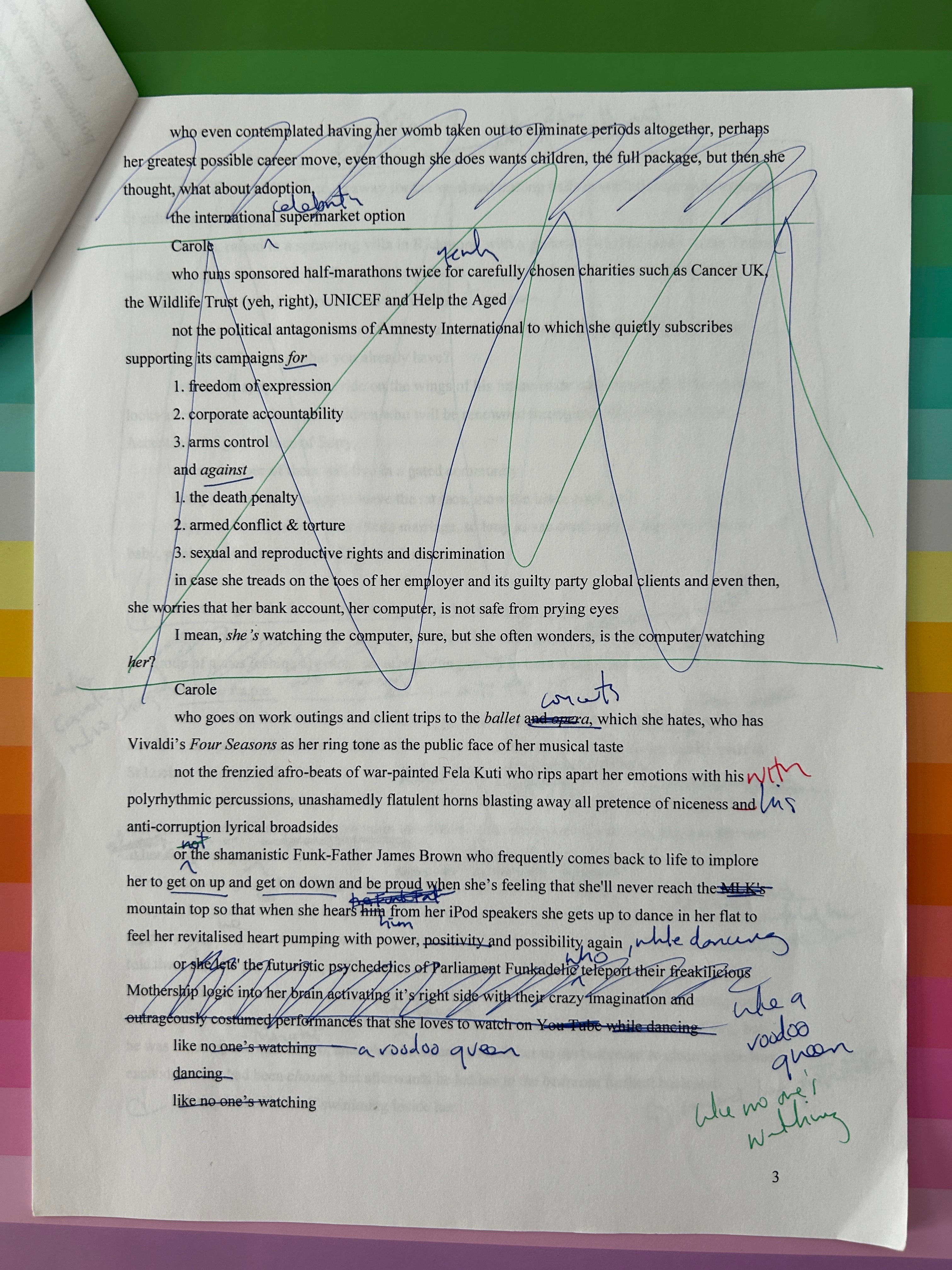 Voila! Here is a very rough early draft of my Booker-winning novel, Girl, Woman, Other (GWO) - focussing on Carole’s chapter - which was how I began the novel. I’ve attached three pages of the initial draft alongside three pages of the final, published version.