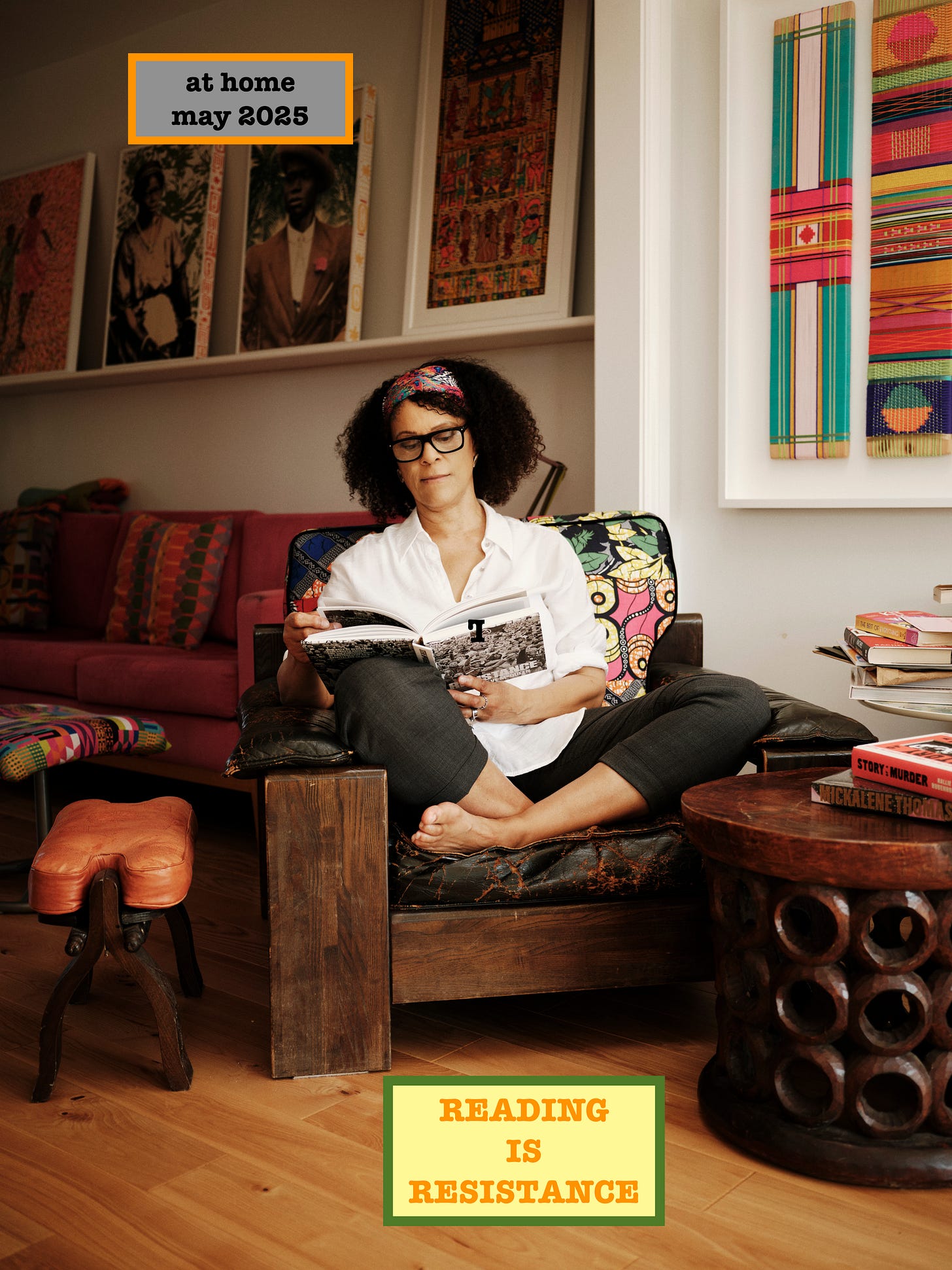 So - this photograph is from a photoshoot at my house in May. I’m seen reading the book, Resistance: How Protest Shaped Britain and Photography Shaped Protest, compiled and edited by the filmmaker and artist, (Sir) Steve McQueen*. It’s very timely, especially right now when even the right to peaceful protest is being shut down by the British Government